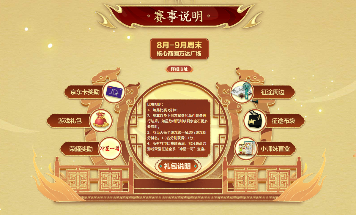 (3)所有城市比赛结束后,总积分最高的游戏将加冕征途“冲星一哥”,该游戏内玩家也将解锁专属奖励!