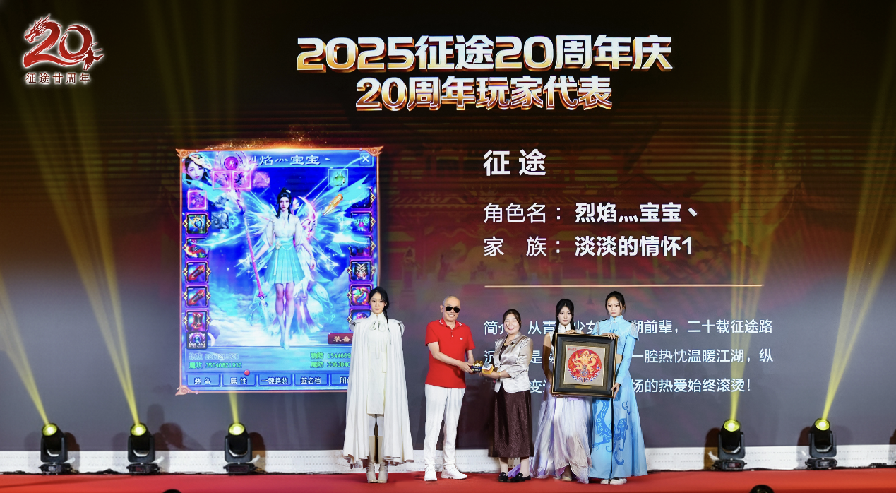 陪伴征途的玩家千千万万,受邀到场的每位荣耀玩家都为征途历程留下了浓墨重彩的一笔,在接下来的荣耀颁奖环节,九款征途游戏为共计60余名荣耀玩家颁发20周年特别奖项。