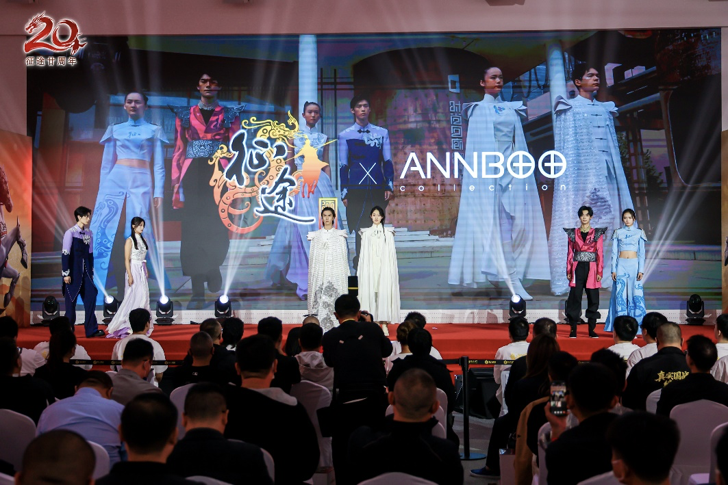 荣耀颁奖环节结束后,众多在游戏内陪伴将军多年的游戏角色纷纷亮相舞台,与观众激情互动,现场更有穿着征途20周年征途x安博联名高定时装的模特,将“经典、传承、创新”的征途精神带入现实,引得现场观众连连叫好,盛典氛围越发热烈。