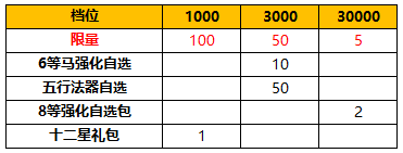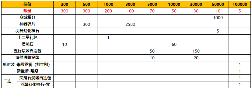 除【五谷丰登、夏日盛典、激战盛夏】之外的活动区服可领取的限量奖励如下: