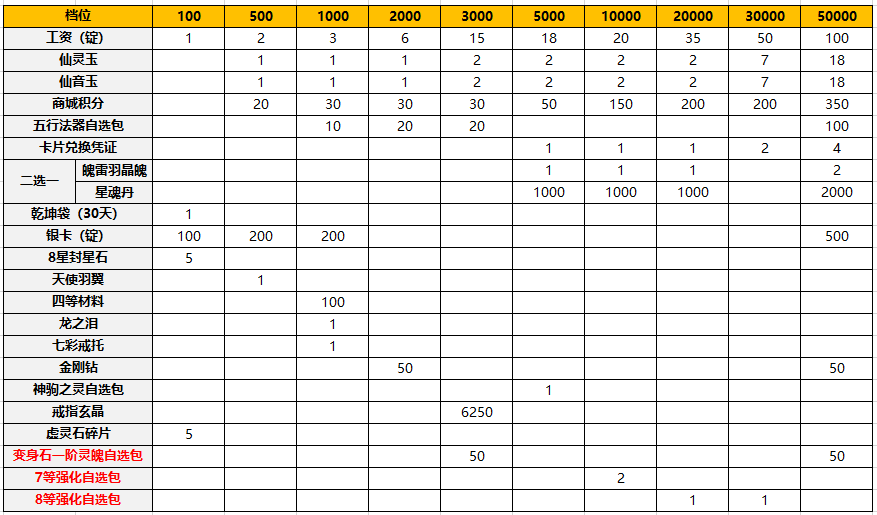 注意事项:本次活动永久移除五行法器、元神强化珠等金子道具,增加宝石碎片、天使之羽!