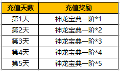 活动期间,玩家每天通过“网银充值”-“直充金子”满200元,即可额外免费领取每日充值奖励,最多可领取5天的奖励。具体如下: