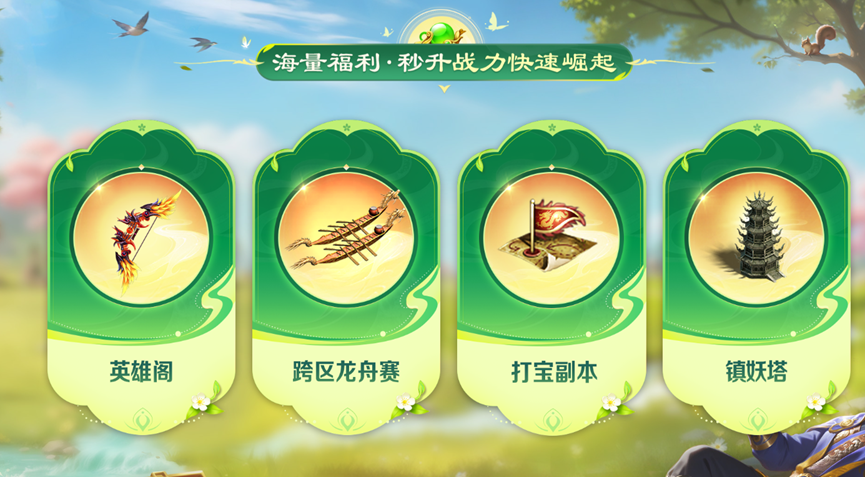 为助力中小号玩家秒升战力、快速崛起,《绿色征途》为本次版本带来了海量福利体系,覆盖资源兑换、趣味赛事、副本打宝等多个场景!英雄阁开放海量稀有道具随心兑换,一站式补齐养成资源!跨区龙舟赛热血开启,家族同心协力即可赢取稀有坐骑外观,彰显专属荣耀!打宝副本刷怪即得海量材料,镇妖塔击杀怪物掉落珍稀道具,多重玩法让中小号玩家轻松积累成长资源,零门槛就能实现战力飙升!