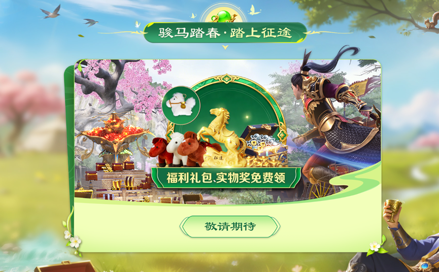 骏马踏春,好礼相赠!全新春日网页活动将于3月9日正式上线,千件实物周边豪礼,游戏道具礼包等你拿,人人有份,记得参与哦!